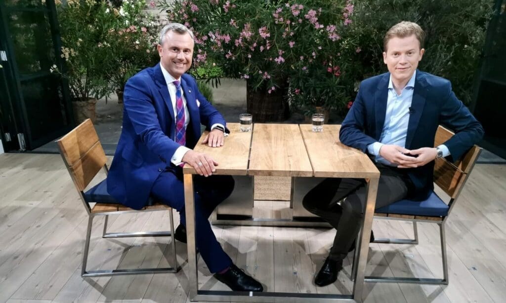 Dafür, dass er sich noch vor wenigen Monaten nicht vorstellen hatte können, überhaupt Gast bei den heurigen „Sommergesprächen“ des ORF zu sein, schlug sich der designierte FPÖ-Parteichef Norbert Hofer am Montag Abend trotz leichten Regens im „Studio 2“ ausgezeichnet. Der ebenfalls erstmalig in dieser Rolle auftretende Moderator Tobias Pötzelsberger verpackte seine offensiven Fragen in einen respektvoll-amikalen Ton, sodass man durchaus den Eindruck gewinnen konnte, der ORF nehme seinen überparteilichen Informationsauftrag endlich einmal wahr.
