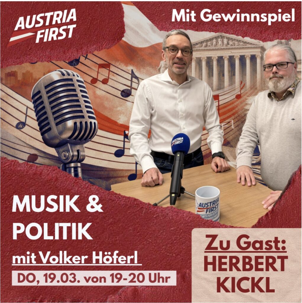 Welchen Musikgeschmack hat eigentlich FPÖ-Chef Herbert Kickl und wie beschreibt er seine Arbeit als Politiker? Das verrät der blaue Frontmann ganz exklusiv AUSTRIA FIRST-Hörern heute, Donnerstag, von 19 bis 20 Uhr.